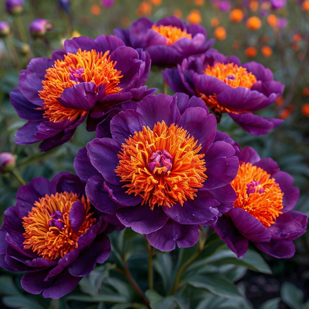 Представляем вашему вниманию пион «Эмеред Касл» — сорт, который поражает своим необычным и завораживающим сочетанием цветов. Этот пион словно переносит нас в сказочный замок, где загадочные фиолетовые лепестки окружают пылающую оранжевую сердцевину. «Эмеред Касл» — это выбор для тех, кто ценит оригинальность, стремится создать в саду атмосферу волшебства и готов удивляться красоте природы.